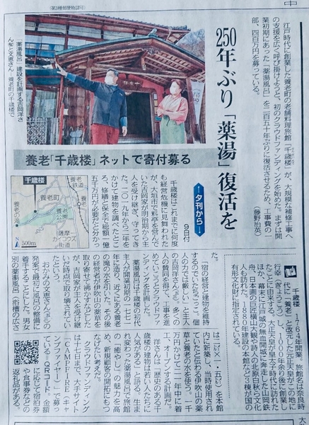 “文化人ゆかりの宿「千歳楼」” 江戸時代に行われていた伊吹山の薬草と養老山地の水で沸かした【薬湯風呂復活プロジェクト】#クラウドファンディングは2021/01/17まで!