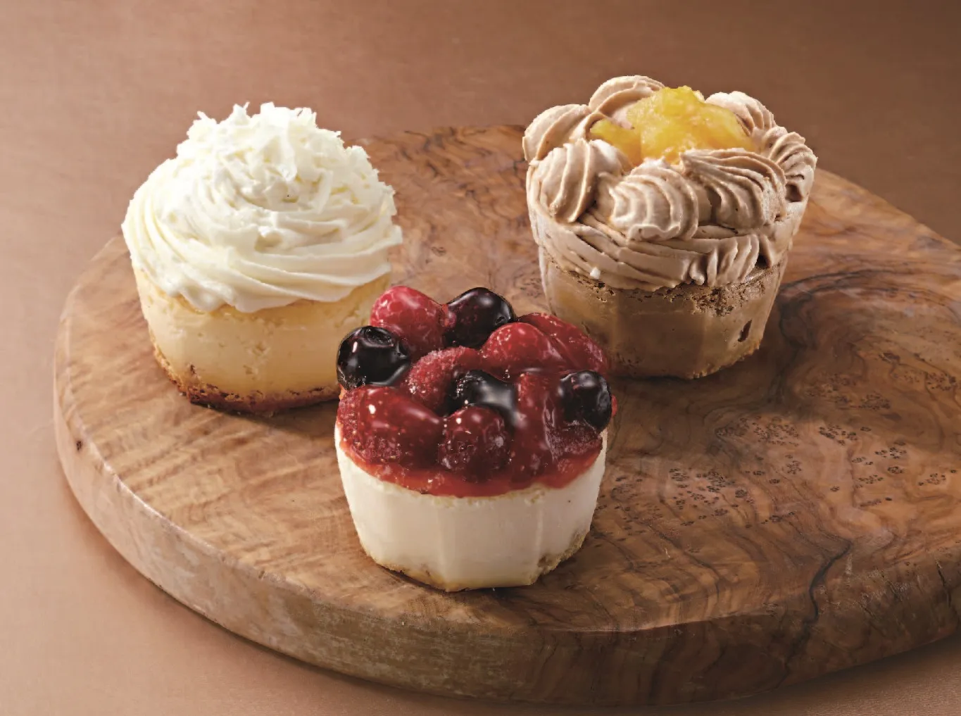 イタリアの産地指定チーズ、パルミジャーノレッジャーノやゴルゴンゾーラを贅沢に使ったチーズケーキに、オリジナルフレーバーのおいしさを用意しました。キャラメルオレンジとホワイトショコラバニラ、ベリーベリー、それぞれの素材の持ち味を生かした深みのある味わいです。