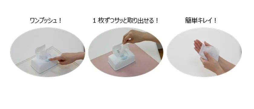 ・ワンプッシュでシートを1枚ずつサッと取り出せるボックスタイプ。