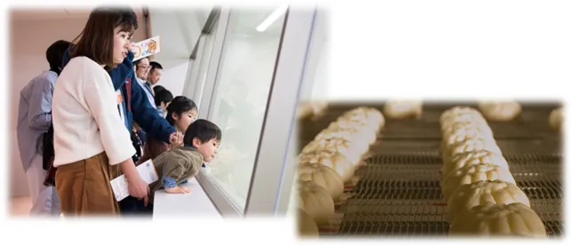 見学内容 | 【シアター】- 【見学通路(工場見学)】- 【おいしさゾーン※】 ※体感型のオリジナルゲーム等のエリア。 一部のゲームは休止します | 【シアター】- 【見学通路(工場見学)】-【おいしさゾーン】- 【キッチン(試食)】 |