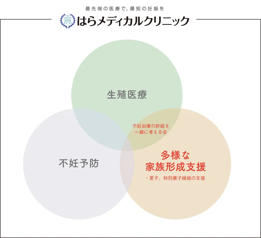 はらメディカルクリニックでは「生殖医療」だけではなく、「不妊予防」や「治療の終結」など、治療期間の前後に必要な知識を深める機会も提供しています。当会は「多様な家族形成支援」を視野にいれた会です。「生殖医療」と「多様な家族形成支援」の間において、お考えを深める機会をご提供するのが会の趣旨となります。