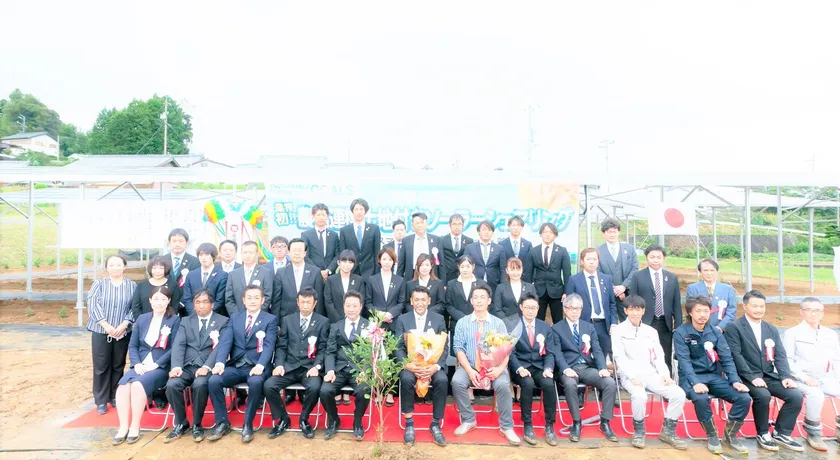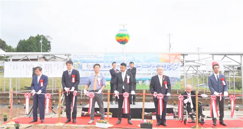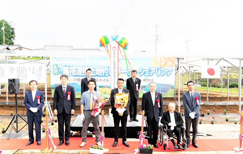 土地付き太陽光発電の販売施工メンテナンスを行う株式会社エコスマイル(本社:愛知県名古屋市、支店:名古屋西・三重・静岡・千葉、代表取締役:東田 顕史(とうだ たかし)、以下 エコスマイル)と農地所有適格法人株式会社彩の榊(本社:東京都青梅市、支店:三重・静岡、代表取締役:佐藤 幸次(さとう こうじ)、以下 彩の榊)は、2021年10月10日、共に支店のある三重県津市にて、兼ねてから考案していた発電事業者向けの「業界初!農福連携土地付きソーラーシェアリング(営農型太陽光発電)」の完成セレモニーを盛大に開催いたしました。