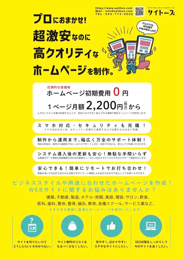 超激安!初期費用0円・月額2,200円(税込)からホームページ作成!