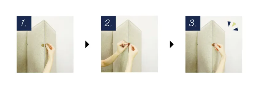 視線だけではなく、周囲の音も和らげることができるパーテーションです。 工業製品の高性能吸音材を材料としており、高密度なポリエステル繊維とフェルト表皮が音を吸収し、ザワツキや反響を抑えます。 組立式なので、使わない時はパーツを分解してスマートに収納可能。お部屋との調和はもちろん、インテリアのアクセントとしてもお使い頂けます。