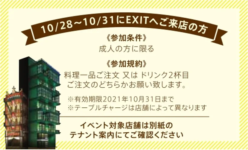 ~なんとアルコール含むドリンク1杯目が全店100円(税込)!? 飲食店が勢ぞろい! 食べて飲んで2021年食欲の秋はEXIT NISHIKIからスタート!!~