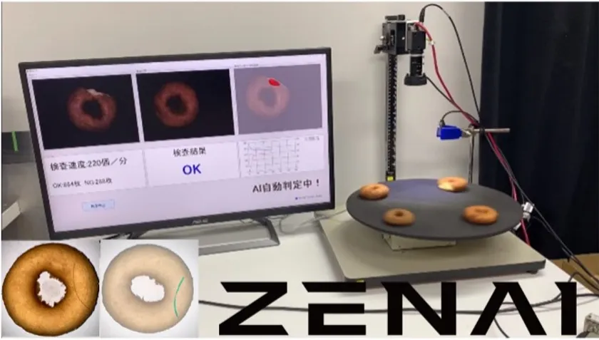 ~導入事例としてドーナツ製造ラインでの異形や異物のOK/NG判定デモを展示~