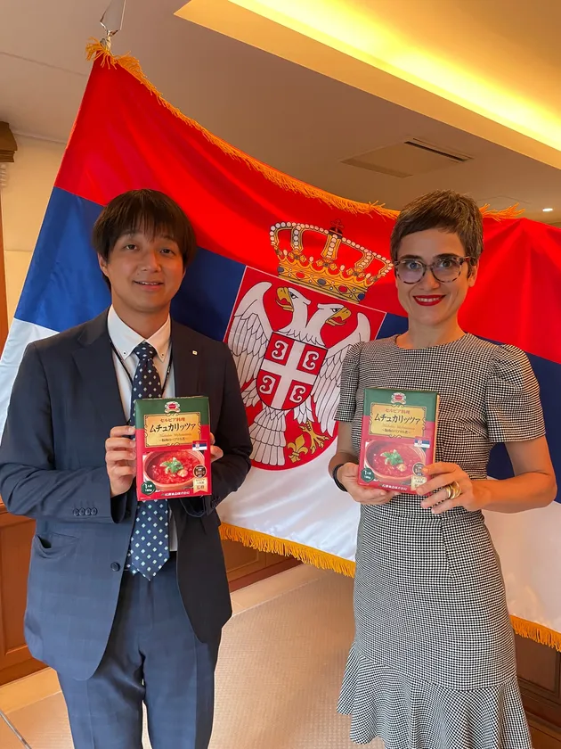 セルビアと日本の友好関係140周年を前に、このたび日本で初めてのセルビア料理のレトルト食品としてムチュカリッツァがお目見えすることとなりました。このセルビア南部の伝統料理を商品として実現させた松原食品の皆様にはその努力への敬意と共に厚く御礼申し上げます。