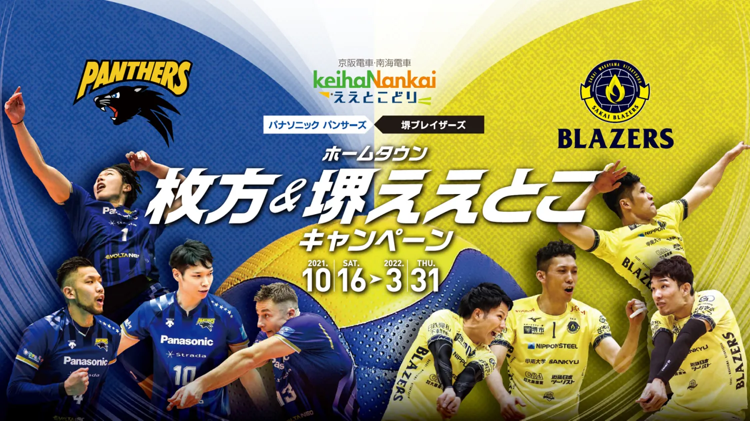 「京阪・南海ええとこどりプロジェクト」 パナソニック パンサーズ×堺ブレイザーズ ホームタウン枚方&堺ええとこキャンペーン