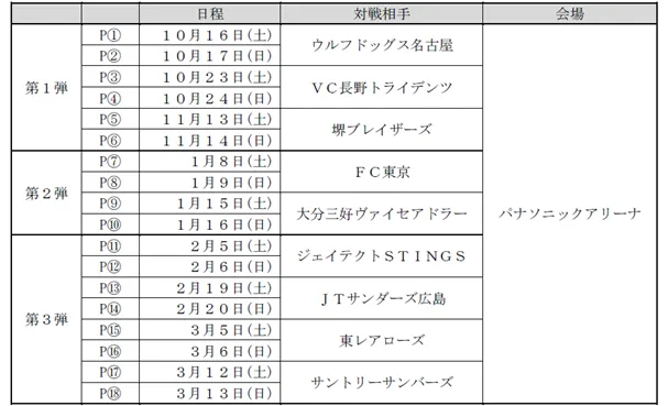 ※2022年1月29日(土)、30日(日)の北九州開催(対東レアローズ)は