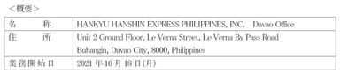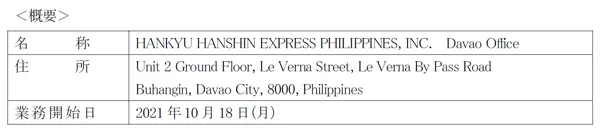 当社フィリピン現地法人である阪急阪神エクスプレス(フィリピン)は、ミンダナオ島の主要都市であり農業関連産業が盛んなダバオ市に事務所を開設し、10月18日より営業を開始します。