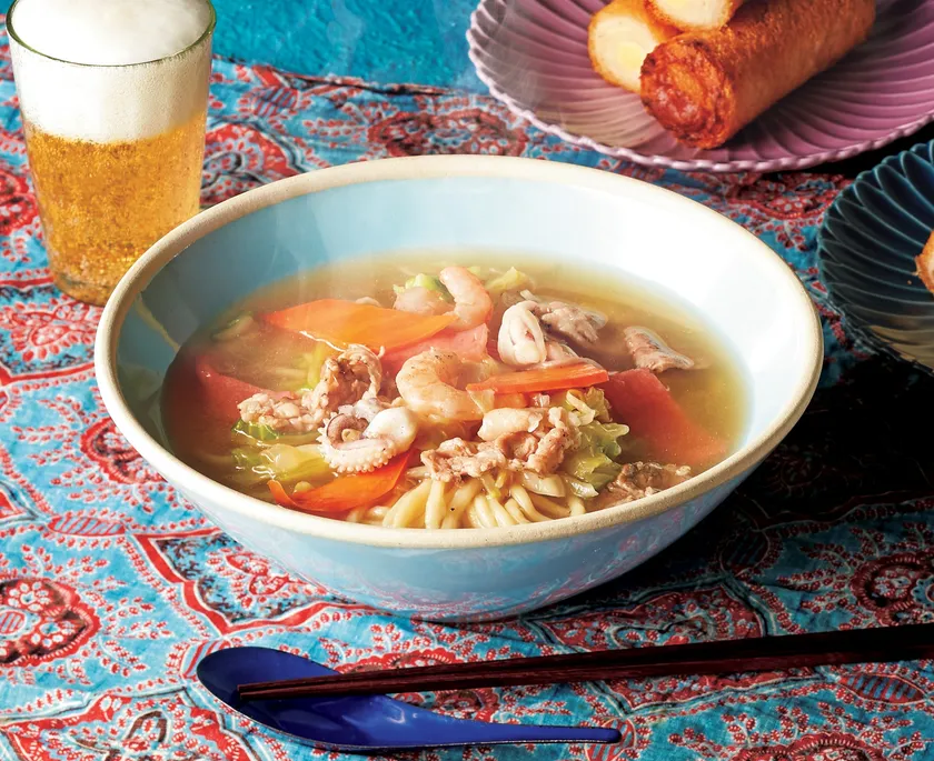 独自にブレンドした粉に、絶妙なバランスで唐灰汁を配合したちゃんぽん麺と、オリジナルの鶏がらスープの相性は抜群。