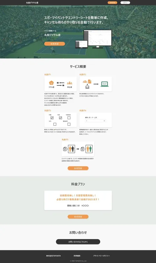 スポーツ施設運営・指導を行う株式会社コア・スポーツ・コーポレーション(所在地:兵庫県、代表:京田 弘幸)は、イベントやトーナメント等を集客する事業者を対象とした集客管理を簡便化することができる新サービス「丸投げマサル君」の提供を11月20日(土)に開始します。