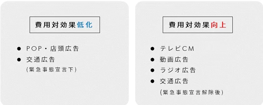 新型コロナの影響により、費用対効果が低下した広告と向上した広告に二分されました。