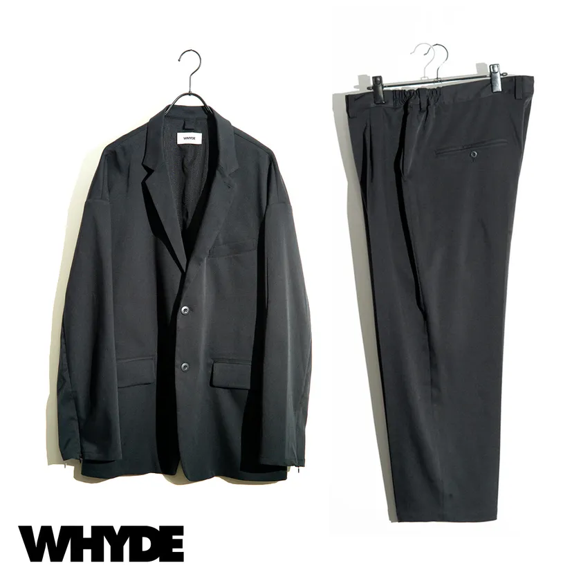 WHYDE のセットアップは、独自に編み出したワイドシルエット。このシルエットだからこそ、ガッチリさんが着ても、ぽっちゃりさんが着ても自然な見え方になるように作りました。