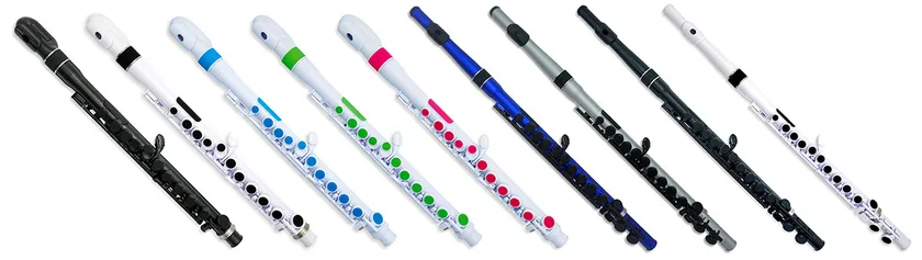 Nuvo フルートは、すべてプラスチック製です。プラスチック素材のメリットとしては、安価、軽量、メンテナンスフリー、耐久性があるといったことが挙げられます。そのため、お子様や初級者の方、屋外で演奏したい中級者・上級者の方に特にオススメです。水洗いできるので、感染症対策にも適しています。