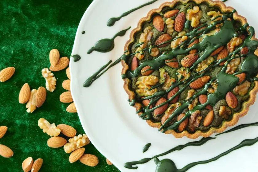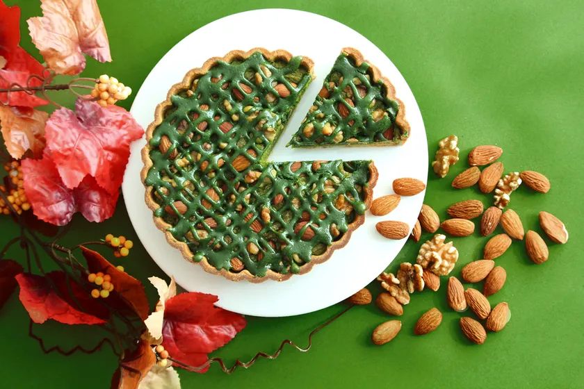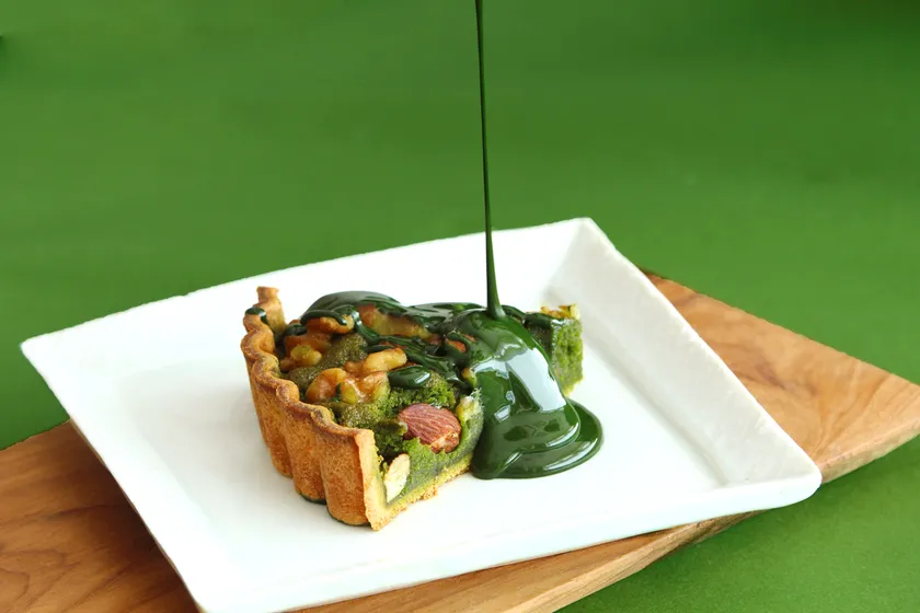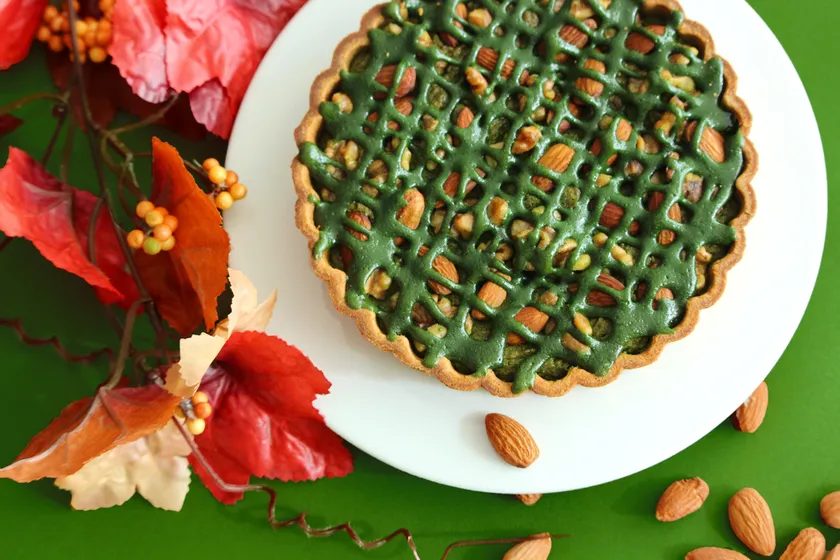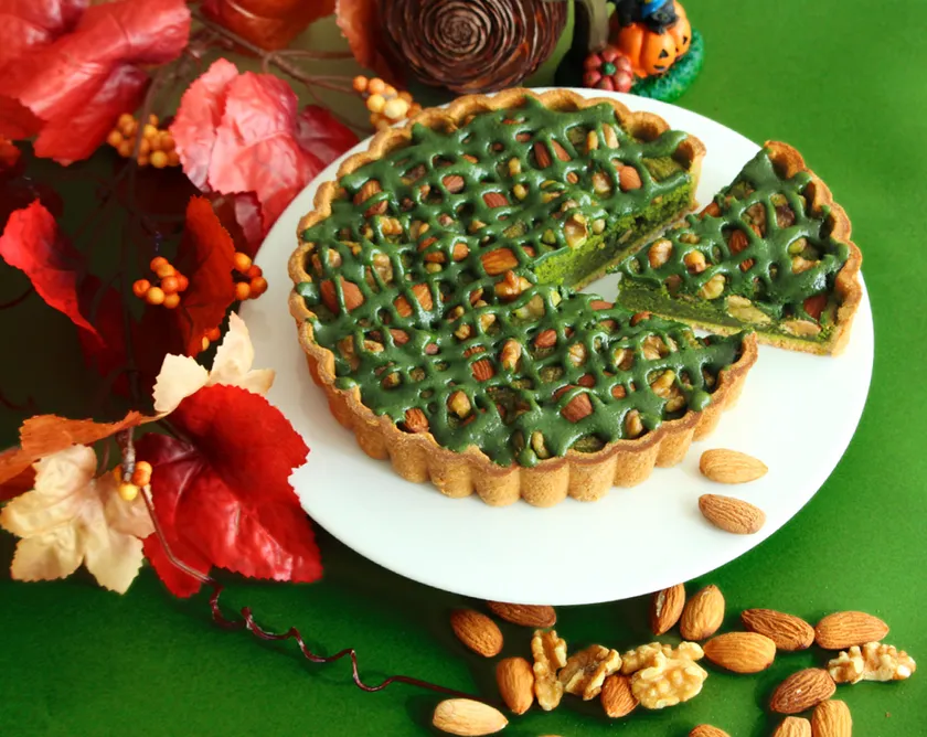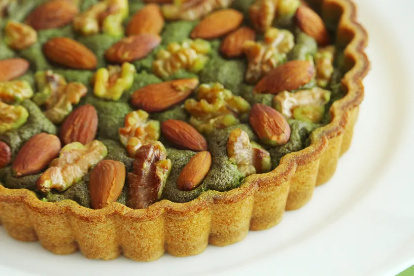 たっぷりの抹茶とアーモンドを使用した贅沢なタルト