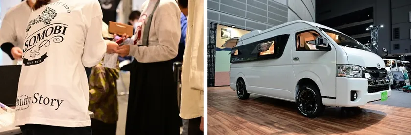 さらに、世界的なトレンドでもあるクルマ旅を基盤にしたライフスタイル「バンライフ」や、防災視点で車を活用する「防災カー」など、さまざまな趣向のクルマやクルマに関する情報満載の展示ブースが並びました。