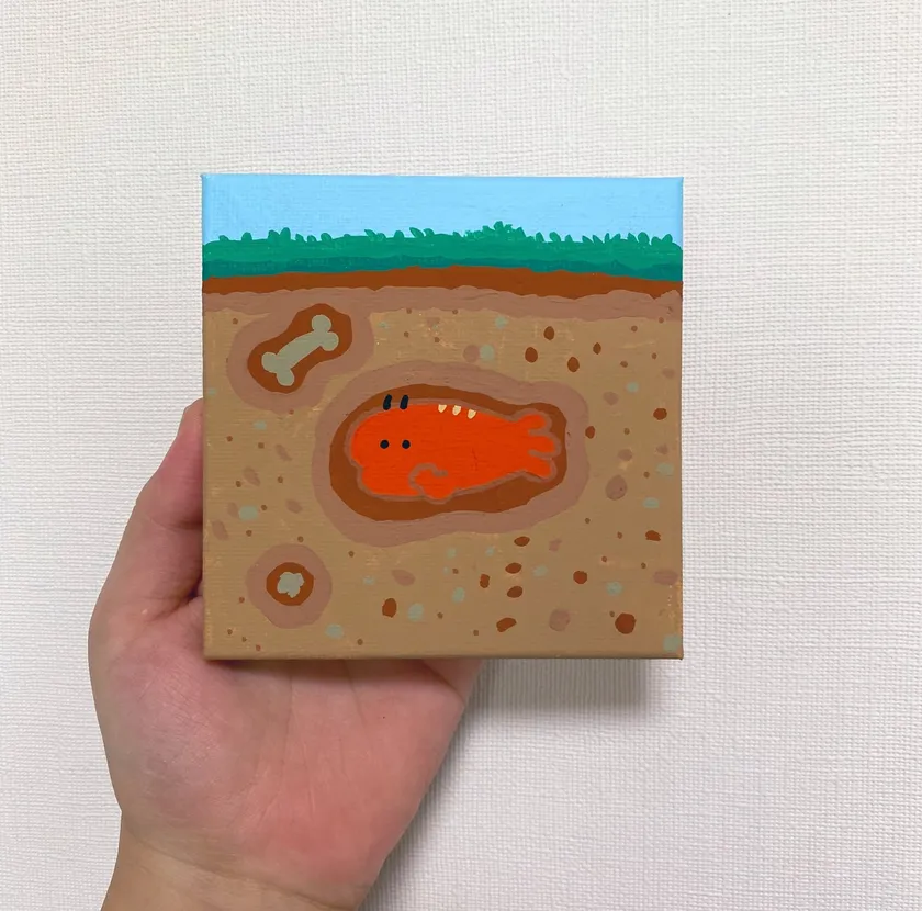 原画ミニサイズ土に埋まったえびたち