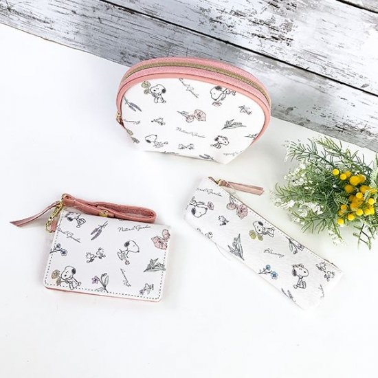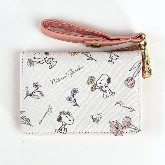 こちらがその、ナチュラルガーデンシリーズのパスケースです。ホワイトの背景に、スヌーピーやお花がデザインされた春らしいアイテム♪水彩画のような柔らかなタッチも、イラストのイメージにピッタリです。