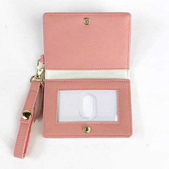 二つ折りで、内側もピンクになっています。カードなどを入れられるポケットもあるので、カード類が多い人には嬉しいですね。
