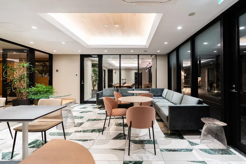 当施設は、中目黒駅から徒歩7分の目黒川より北側の商業性と住環境の良さを兼ね備えたエリアに位置しております。コロナ禍でテレワークが浸透し、大きく生活様式が変化する中、この立地特性を最大限に活かすため、レジデンス・オフィス・ショップの複合施設を計画しました。住まい方や働き方が多様化する時代にレジデンス・オフィスの入居者向けの「職」「住」が融合するラウンジにより、新たなライフスタイルを提案しております。