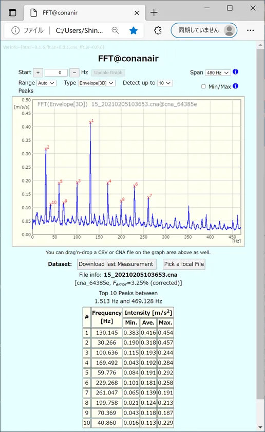 データファイルのドラッグ&ドロップで簡単に周波数分析できる