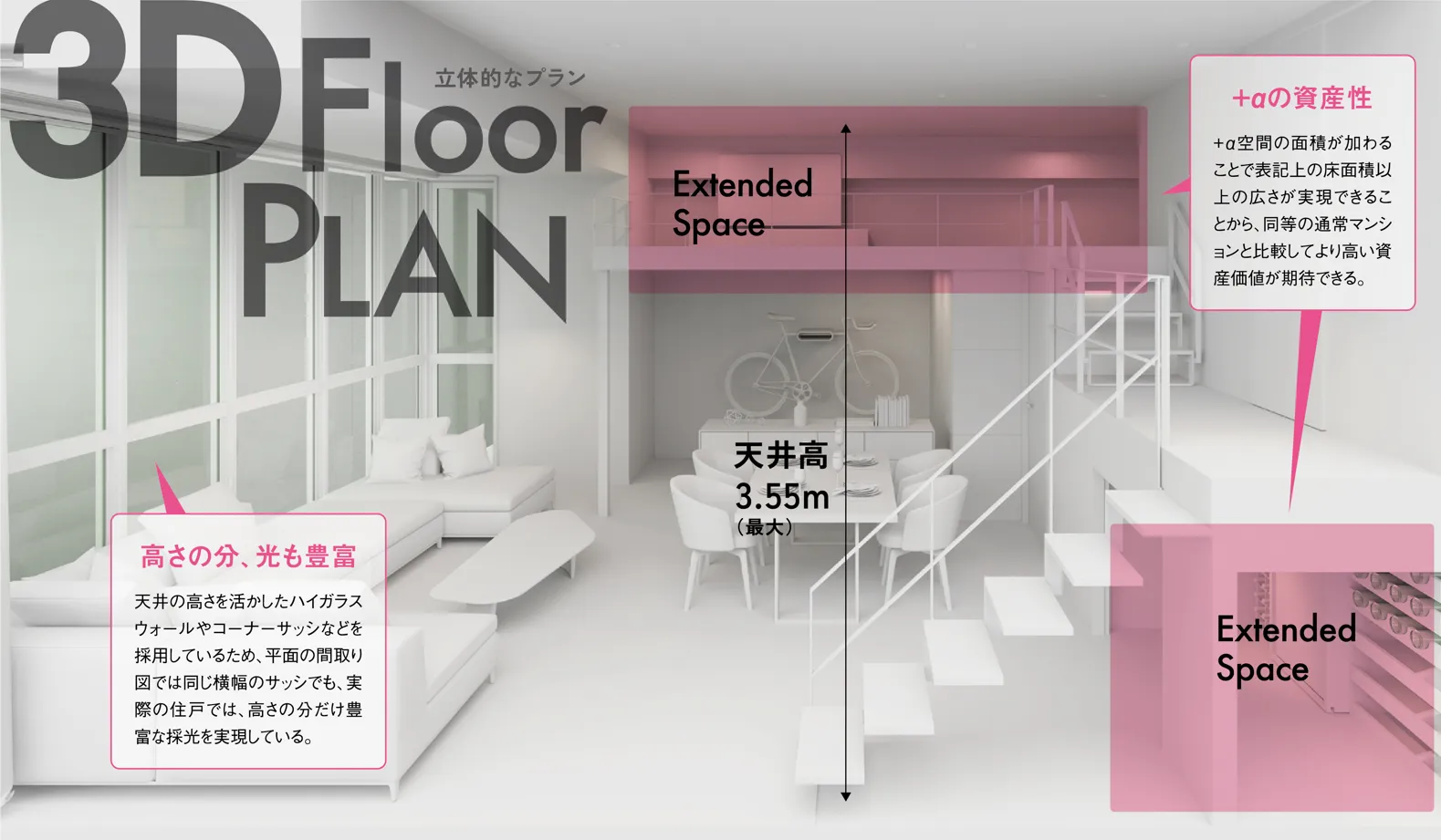 「働き方改革」によりリモートワークが浸透し、家で働くことが主流になりつつあります。これにより暮らし方が大きく変化していますが、従来の画一的な少人数世帯向けコンパクトマンションでは対応しきれていない現状があります。『コンパクトマンションという限られた面積の中でいかに多様な暮らしができるか?』『理想の「職住一体」が実現できる居住空間とそれに付随するシステムや共用施設とは?』『多忙な少人数世帯の多様な暮らしをサポートするソフトサービスとは?』をテーマに、ニューノーマル時代の新たな都市型コンパクトマンションとして、『天井高3.00~3.55mの27タイプ立体的プラン』『SOHO専用フロアと職住一体をサポートする共用部の充実』『単身者・共働き世帯向けソフトサービス』等を提案しました。