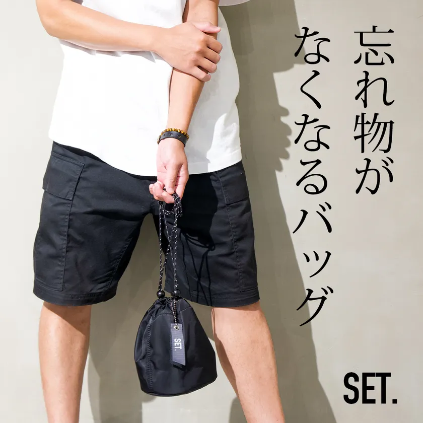 もう忘れ物しない、部屋からそのまま外出できる 多機能巾着バッグ『SET.』がMakuakeにて 販売開始30分で目標金額を達成!