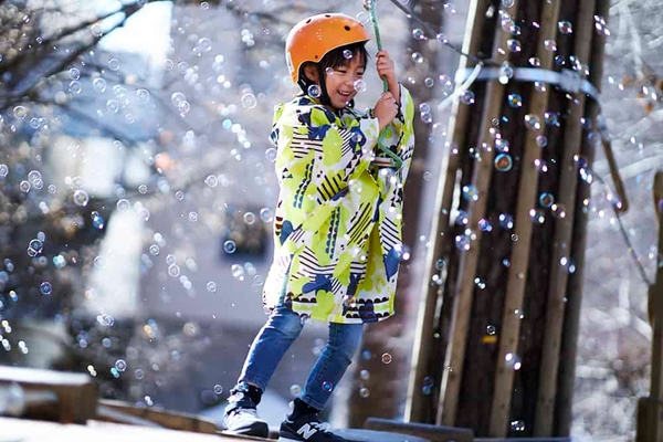 ホテルに隣接する森に設けられた地上5~7mのアスレチックコースで、空中の世界を楽しむアクティビティ「森の空中散歩」に、雨の日限定の「ふれふれバージョン」が登場します。身長90cmの子どもから挑戦できる「KIDSコース」では、定期的にバブルシャワーが発生。雨の日は湿気が多くシャボン玉が割れにくいので、幻想的な世界を体験できます。また、レベル1~4のコースでは、参加者に向けて地上から水で攻撃をする「レインソルジャー」が登場。参加者には、空中から水鉄砲で迎撃ができるようにウォーターガンを貸します。