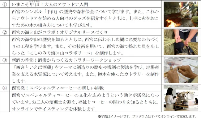 このイベントは、「ゆめ・まちプロジェクト」の中でも、お客様参加型で実施している「阪急阪神 ゆめ・まちソーシャルラボ」の取組の一つとして行うもので、沿線の各地域が持つ魅力や社会課題に気づくきっかけづくりになればと考えております。今回は、「西宮」をテーマに「ゆめ・まち 大人の社会科見学in西宮」と題して、4つのプログラムをオンラインで提供します。