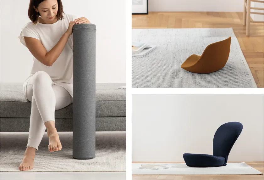 身体を正しく支えて、心地よい座りへと変える姿勢サポートシート。鞍から発想した『KURA SEAT(クラシート)』はテレワークやリラックスタイムなど幅広いシーンで活躍。骨盤と腰椎をピンポイントで支える『BOLLARD CHAIR(ボラードチェア)』、全身ストレッチもできる座椅子『STRETCH CHAIR(ストレッチチェア)』は座るだけで美姿勢へと導き、ラクな座り時間を提供します。