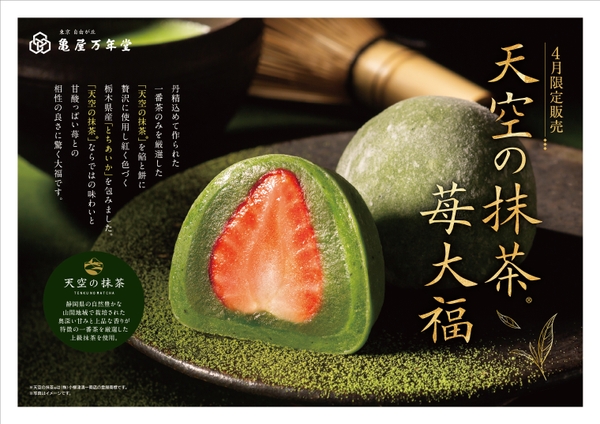 甘味と旨みが一味違う高級抹茶「天空の抹茶®」を使用した『天空の抹茶®苺大福』4月限定販売