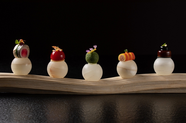 料理長・浜田は、日本旅館で提供する料理とは何かを考えていくなかで、日本の食文化を支えてきた魚に着目しました。また、魚のみならず、それぞれの食材にあった農法や飼育を行っている生産者の元へ自ら出向き、こだわって選び抜いた食材を使っています。フランス料理の世界で腕を磨いてきた浜田が持つ繊細な感性で、各食材の個性を掛け合わせ、素材の旨味を引き出します。日本の豊かな海、清らかな川、滋味深い土の良さを感じる厳選した食材の息吹や、その食材に関わる人々の想いを伝えたいと考え、辿り着いたのが「Nipponキュイジーヌ」です。