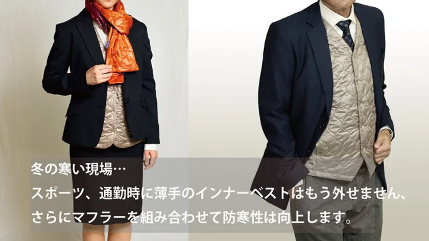 極薄、軽量なのに保温性抜群のナノファイバーベスト&マフラー 「nanoの羽衣」クラウドファンディングMakuakeにて販売開始 コンパクトで持ち運びも出来る機能性