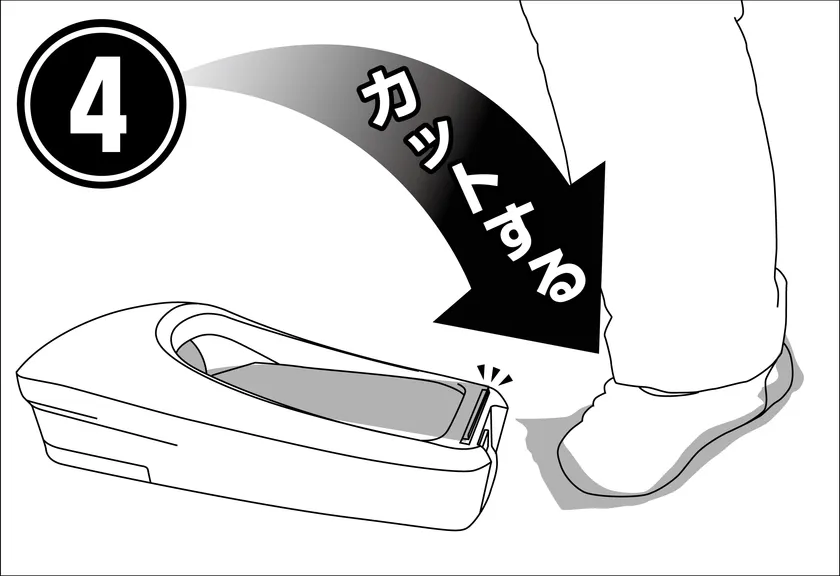 踏む・引っ張る・切るの簡単3ステップで装着可能。厚手の特殊粘着フィルムを使用しているので破れにくく耐久性に優れています。強力密着なのにフィルムの取り外しがスムーズにできますのでストレスを感じることなく簡単に脱着ができ、例えば作業中に手がふさがっていても立ったまま装着することもできます。