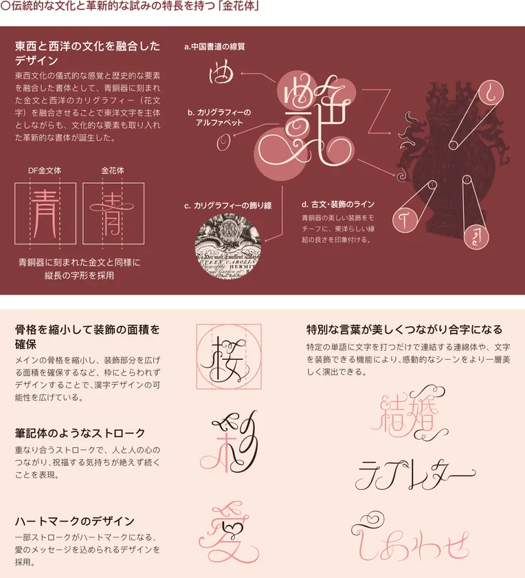 ▼金文とカリグラフィーを融合させた特別な瞬間をさらに輝かせる新書体「金花体」を発表