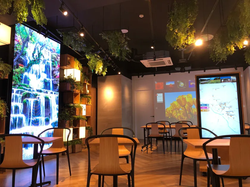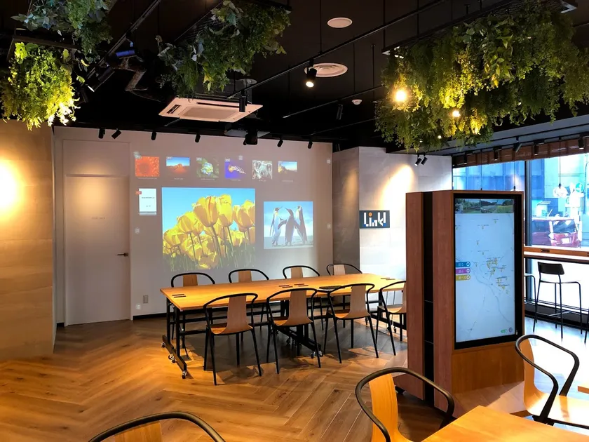 フリースペース内のディスプレイでは、地域情報(飲食店、教育施設、医療機関、イベント情報)を自由に検索でき、マップ上から町田市を知っていただくきっかけ作りを担っています。