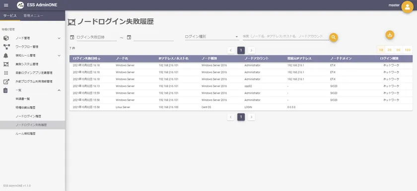 図1. ESS AdminONEのユーザーインターフェイス(特権ID貸出履歴・録画機能)