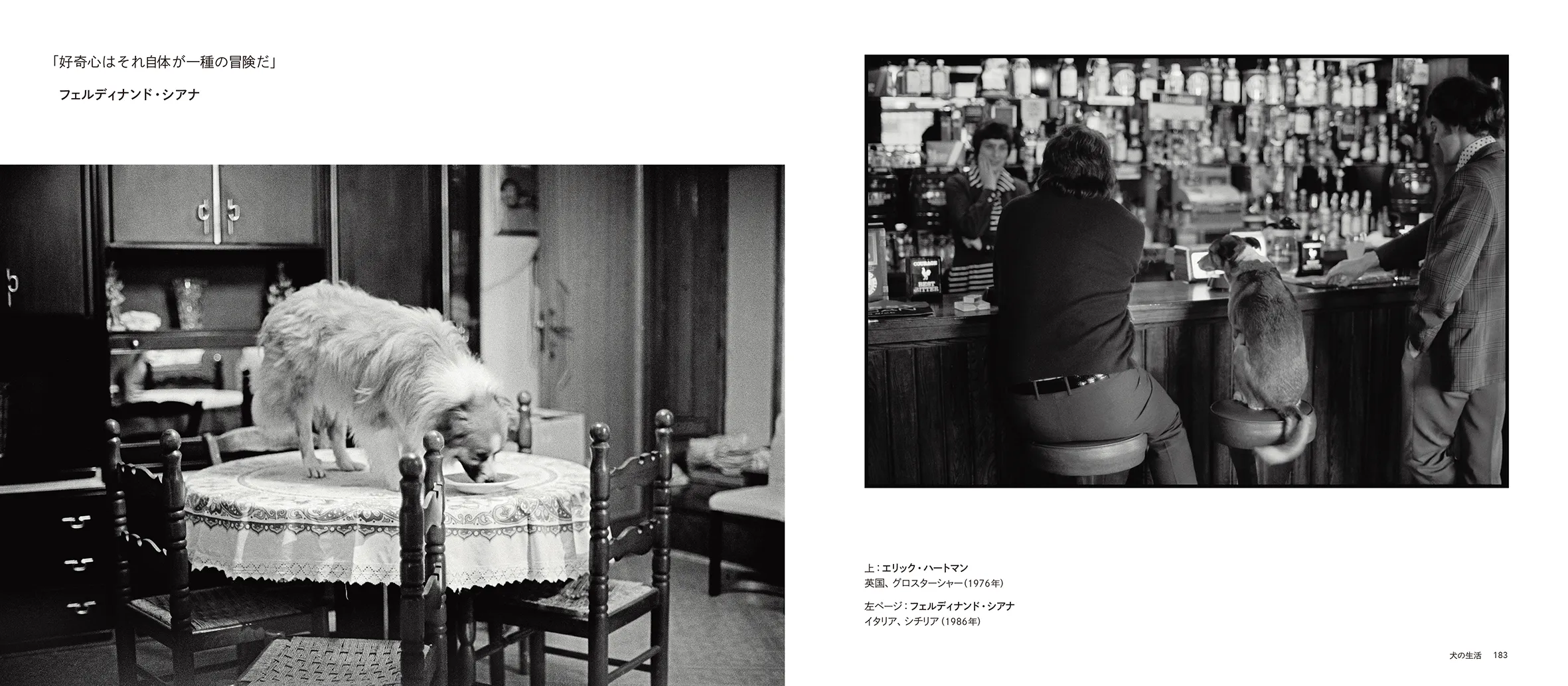 そんな世界最高の写真家が撮影した、最高にかっこいい犬たちの写真が満載の本書。街中をうろつく犬、海辺ではしゃぐ犬、家族の帰りを待つ犬、ドッグショーに挑む飼い主と犬、仕事に励む犬……。犬はレンズの先に、何気なくそこにいて、人々の暮らしの中に溶け込んでいます。
