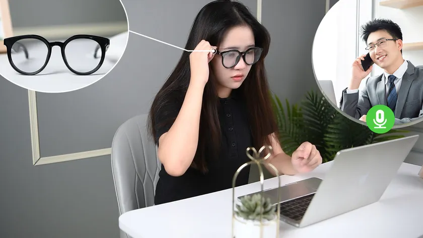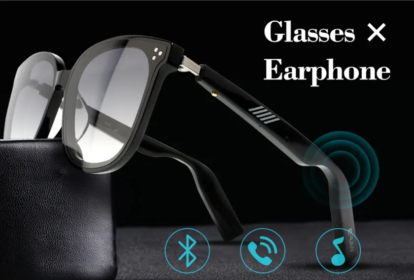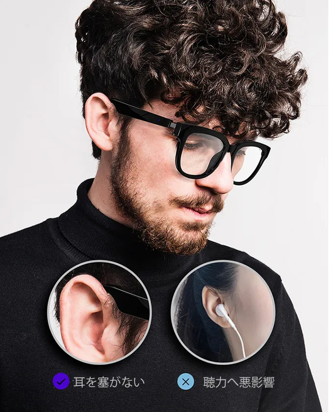 ERANスマートグラスは左右のフレーム部分に、超小型の指向性スピーカーを搭載。指向性スピーカーとは、音を分散させず一定の方向にのみ飛ばすので、音漏れを抑えつつ、耳を塞ぐことなくリスニングが可能。