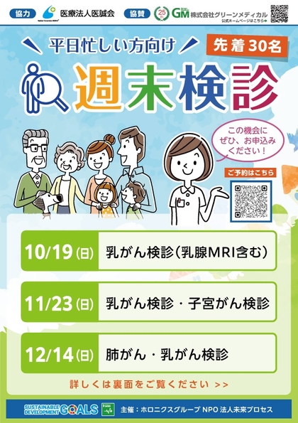 「週末検診」では、休日の静かな病院でほとんど待ち時間もなく検査を終えられます。また、このイベントはNPO法人未来プロセスの補助を活用した費用設定となっており、より多くの方へ検査機会を提供しています。