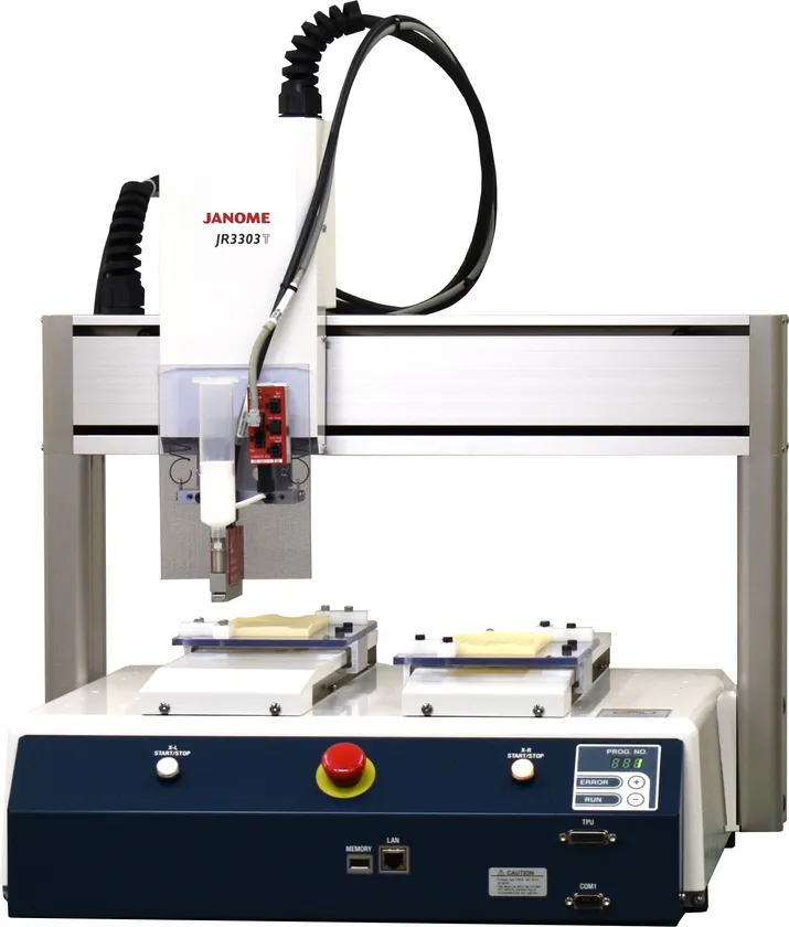 本機は用途別に、塗布用の「JR3303T」と標準用・ねじ締め用の「JR3353T」の2機種を用意しました。両機種ともアプリケーション専用のソフトで、ティーチングペンダントを用いた対話方式の簡単ティーチングが可能です。また、PCソフトを用いたティーチングでは、USBカメラによる簡単且つ正確な位置の設定も可能となっています。