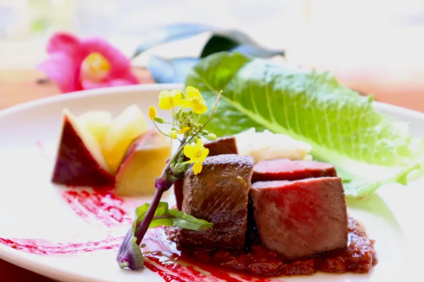 高知県では、野生鳥獣による被害対策のために捕獲したシカやイノシシなどを地域の資源として有効活用し、ジビエの消費拡大に取り組んでいます。自然豊かな仁淀川エリアは、鮮度の高い食材を使ったジビエ料理や商品が名産に。高知よさこいジビエコンテストで優秀賞に輝いた「Cafe&Bistoro 木の根に萌(きざ)す」では、イノシシとシカの肉を使ったハンバーグやパスタなどの人気メニューを味わえます。