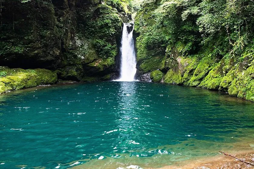 仁淀ブルーのシンボル「にこ淵」の源流にあたる、「程野(ほどの)の滝」。