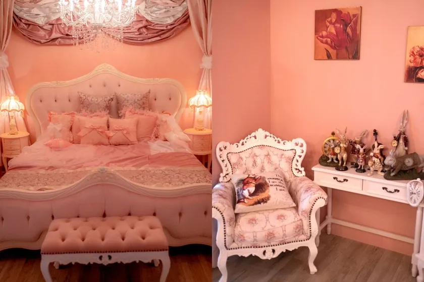 プリンセスルームは、部屋一面ピンク尽くしのお部屋。