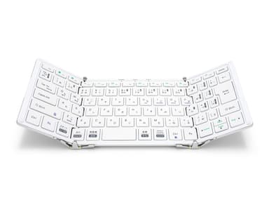 前作MOBO Keyboard同様、折りたたんで持ち運べる小型Bluetoothキーボードです。三つ折り構造なのでで、二つ折り型のようにスペースキーが2つに分かれるなど、キーサイズが極端に崩れることもありません。両端にたわみ防止の脚がついているので、がたつきのないしっかりとした打鍵が可能です。
