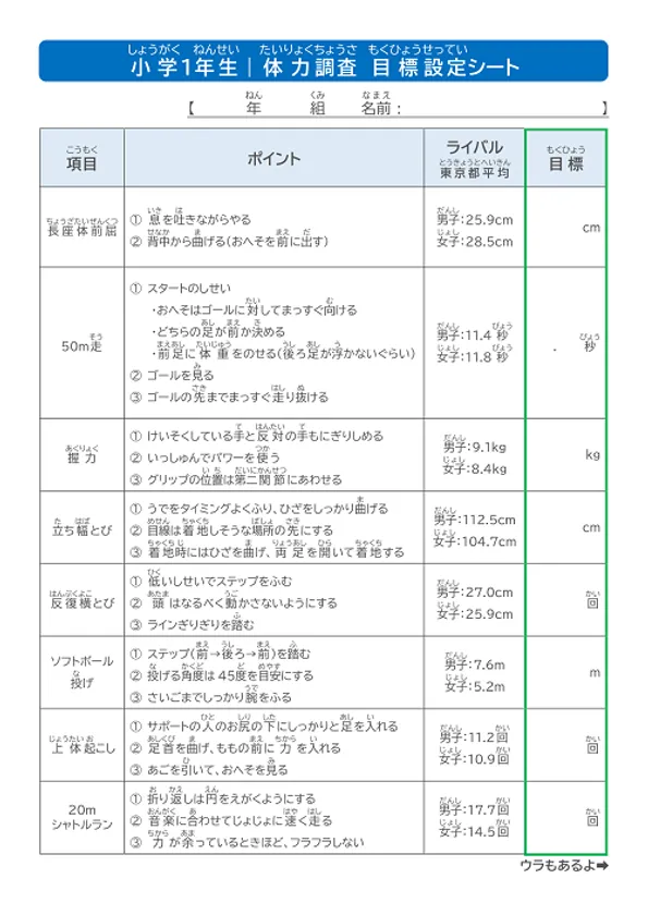 シートがあることで目標を意識したり、友達や親と話をするキッカケが生まれ、結果的に運動について考える機会が増えることになりました。東京都の平均値を仮想ライバルと設定し、学年全体でライバルを超えられるように意識してもらうことで、測定当日はお互いを応援し合う光景がみられました。クラスメイトや友達と競うのではなく、周りとともにチャレンジし、自分の目標に挑むという意識により、自然とクラスメイトを応援し合うような雰囲気が生まれました。
