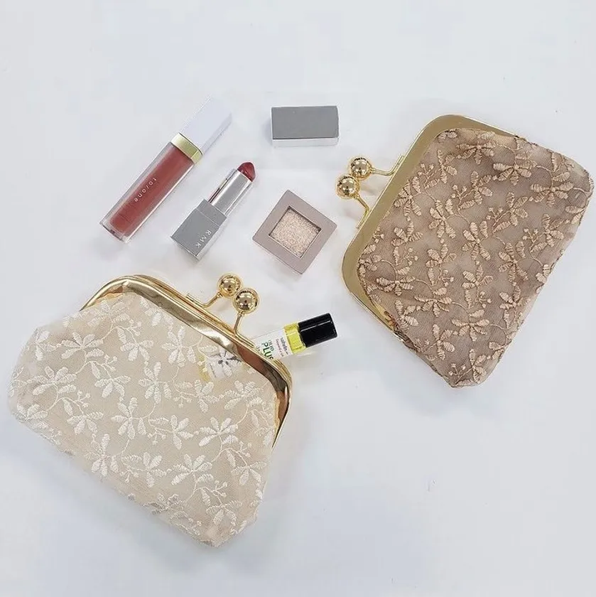 花柄レースがま口ポーチ