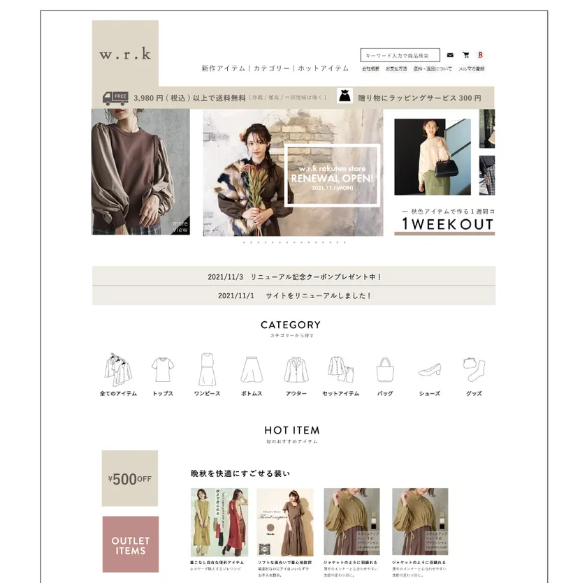 成長中のオールドワークス・フロンティアが運営する 「w.r.k楽天市場店」が11月1日にリニューアル アパレル総合ショップとして勝ち抜く足掛かりへ