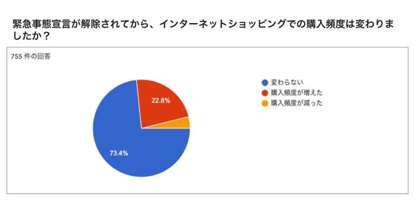 緊急事態宣言が解除されてからも、オンラインショップ利用頻度は【変わらない】と回答した人は73.4%でした。